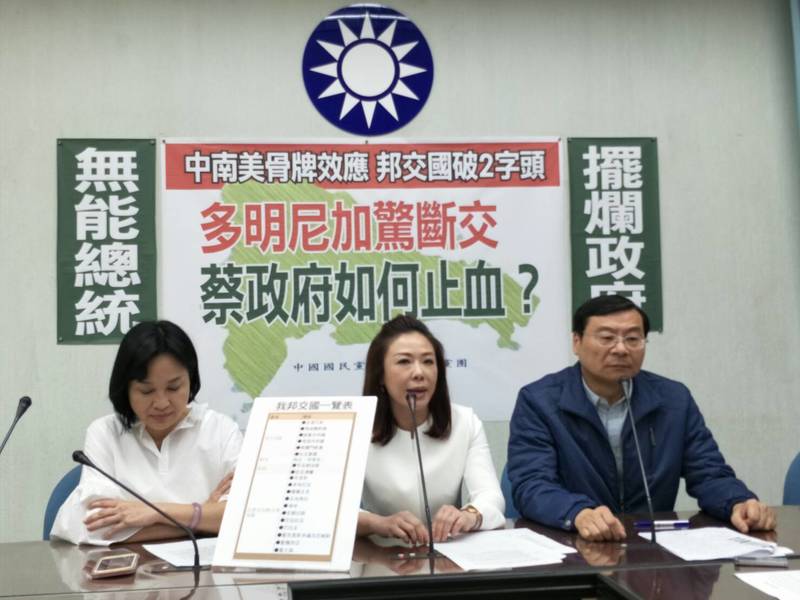 【台灣醒報記者譚有勝台北報導】針對多明尼加與台灣斷交,國民黨1日召開記者會呼籲政府全面檢討兩岸與外交戰略,以防發生斷交骨牌效應。黨團書記長李彥秀質疑,多明尼加與我斷交有跡可循,但為何我國早前還編列大筆預算、贈送軍備物資向其示好?立委曾銘宗則認為,除了多國之外,中南美洲的國家巴拿馬去年才與我國斷交,政府必須檢討兩岸、中南美洲外交政策,以防斷交骨牌效應再次發生。