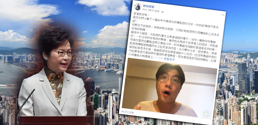 中文大學中文系前高級講師歐陽偉豪隨後在個人Facebook上載影片,反駁有關該篇文章的說法,批評港府教育局引用權威欠缺精準,更質疑背後有強烈壓抑粵語的動機。