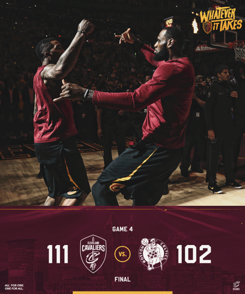 因此就算回家保住2勝,騎士的晉級希望仍顯坎坷,全世界都知道騎士若要拿下系列賽,作客的第5戰勢在必得,詹姆士說:「波士頓花園球場是(對客隊)充滿惡意的環境,不是流著綠色血液的球員就會遭到無情的噓聲對待。」但他鼓勵球隊,若能帶著第3、4戰在主場的氣勢,仍有機會跨過綠色高牆、連續4季都打進總冠軍賽。