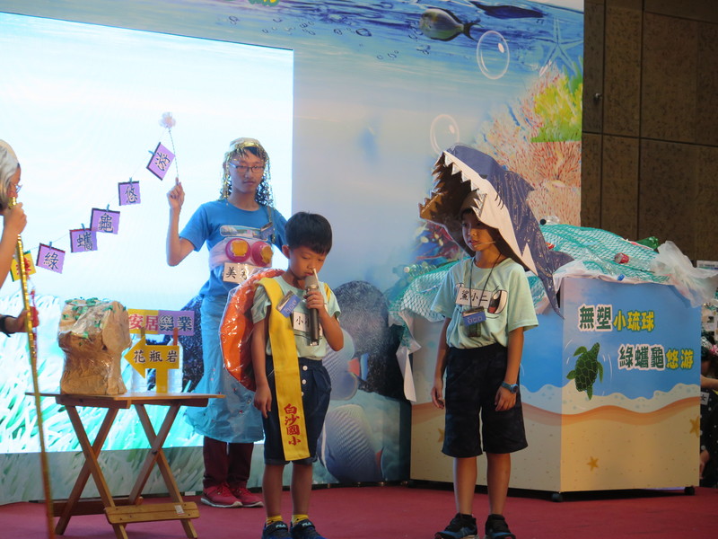 【台灣醒報記者貝薈涵台北報導】「我在海裡游阿游,突然一根吸管插進鼻孔裡,我覺得好痛哦!」屏東縣琉球鄉白沙國小學生23日在記者會上演出「海的孩子」行動劇,稚嫩的聲音,搭配海綿寶寶裡的人物場景,顯露海洋生物,尤其綠蠵龜所面臨的困境,讓與會者會心一笑,卻又參雜着淡淡哀傷。行政院環保署署長李應元呼籲,遊客自備環保餐具,店家不應提供一次性餐具,全民保育台灣唯一的珊瑚島—小琉球。