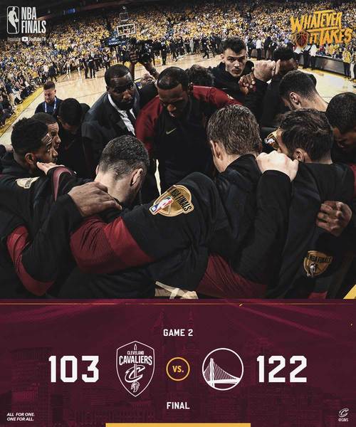 季後賽遇上的溜馬及塞爾提克的艱困過程,都沒看過小皇帝露出疲態,此役到末節最後5分鐘比分被拉開,詹皇與第一副手洛夫都下場休息後,詹皇被拍到一臉放空,神情疲憊的表情似乎能訴說前2戰騎士的縮影:全力燃燒也敵不過一群球星輪流發揮。儘管詹皇仍舊神勇繳出29分9籃板13助攻的「接近三雙」數據,洛夫也貢獻22分10籃板,仍然看不到勇士車尾燈。