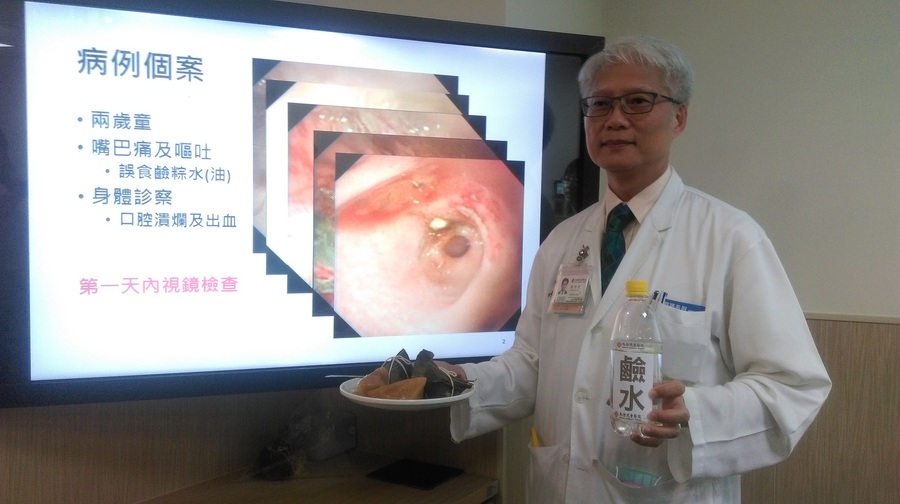 【台灣醒報記者蔡岳宏台北報導】端午將至,一名2歲的孩童竟誤食阿嬤包鹼粽的鹼水,導致食道、胃灼傷!馬偕兒童醫院腸胃科主任陳偉燾表示,鹼水屬於強鹼,由於無色無味,誤食風險高。他說,強鹼易造成深層傷害,輕則灼傷,嚴重則食道潰瘍、狹窄,日後需進行食道重建手術恢復進食。中榮腸胃科吳俊穎醫師提醒,若幼童不幸誤食,切勿催吐或灌食清水,建議攜帶誤食溶液或包裝並隨病人盡速送醫。