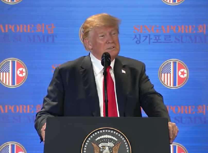 根據《CNN》報導,川普在川金會之後召開記者會,他肯定金正恩的棄核態度相當認真,金正恩說,北韓正在摧毀一個導彈發動試驗基地,北韓將落實朝鮮半島無核化。但有媒體質疑,協議內容沒有可驗證的強制約束力。