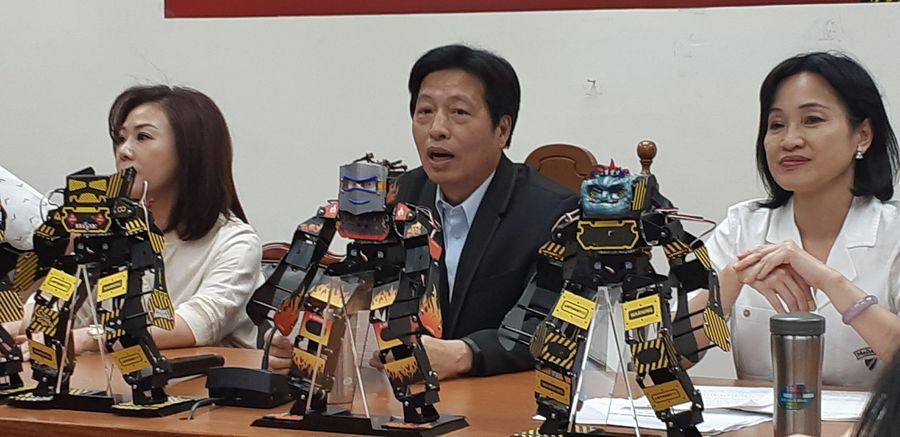 【台灣醒報記者藍苡瑄台北報導】立委鄭寶清、柯志恩、李彥秀等人在現場操控一款格鬥型機器人,進行對打出拳、向前跨步,玩得不亦樂乎。中華民國STEM教育協會副理事長兼現任立委柯志恩與鄭寶清、李彥秀等人13日出席「大家一起玩機器人」記者會時表示,「組裝與操作機器人牽涉到工程、數學、技術等,從小玩機器人能讓學習能力倍增,」STEM教育協會推出繁星100機器人菁英培育計畫,徵選大台北100位學生培訓機器人課程。