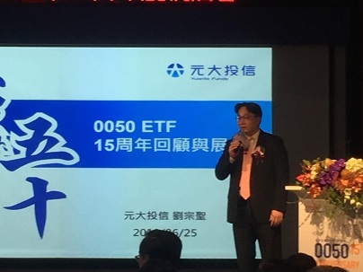 簡述ETF的優點,元大投信總經理劉宗聖表示,成本低、風險分散與透明度高都有助於投資客運用並投入成熟的金融市場,他更舉0050的表現說明,股息殖利率3.17%、平均填息天數42天、最快更曾有過2天填息的紀錄,「因為填息天數的速度優勢,這檔ETF不會出現賺了股息、卻賠了價差的狀況。」