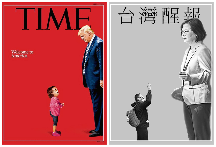 一位2歲的宏都拉斯女童,被母親帶著偷渡入境美國。她的母親被捕之後,隔離接受搜查,留下女童獨自一人哭泣。「時代」雜誌以這張照片的女童身影,與美國總統川普照片合成在一起,配上「歡迎來到美國」標題,做為7月2日號最新一期封面。