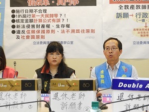 全國教育產業總工會理事長黃耀南指出,年改新制立法過程中爭議不斷,執政黨卻強行通過,不合理處包括過往教師退休僅能在8月1日或2月1日,訂定細則時卻要特別訂定今年、明年可在6月30日退休;另外,優惠利率雖訂前2年降為9%、第3年起歸0,但不少教師收到重新審定書,第一天即降為0元,出現核定金額錯誤情形,亂象百出。