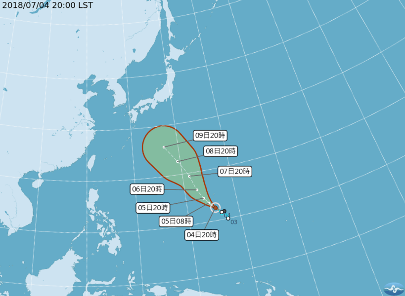 在關島附近的熱帶性低氣壓於4日晚間8點增強為輕度颱風「瑪莉亞」,目前以每小時14公里速度,向西北進行。林定宜4日下午3時受訪時曾推測,「未來將往日本方向移動,目前看起來對台灣沒有直接影響。」因為颱風目前距離台灣還算遙遠,必須密切觀察留意未來走向。