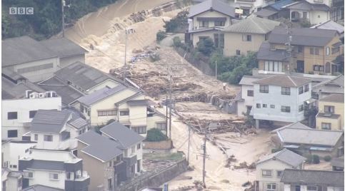 根據《NHK》報導,因為梅雨鋒面滯留,日本西部多個地區包括廣島、愛媛、岡山、京都從5日起均淪為重災區。據悉,豪雨已造成72人死亡,51受傷、63人失蹤,以及2百萬人流離失所。大部分的死亡人數集中於廣島縣。