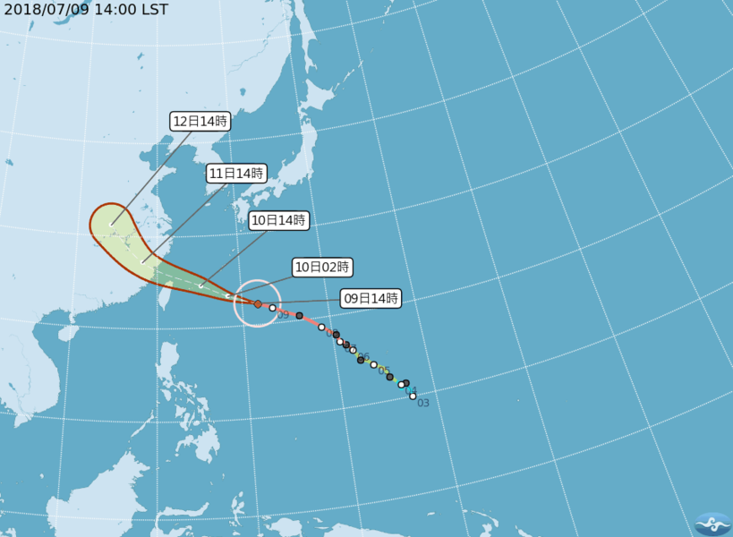 【台灣醒報記者藍苡瑄台北報導】「強颱『瑪利亞』至截稿前的中心位置距離台北的東南東方約990 公里,氣象局9日下午2點30分發佈海上颱風警報,」中央氣象局預報員張承傳說,目前颱風以每小時30公里速度,朝西北西方向,台灣北部近海移動,但登陸台灣的機率小,陸上颱風警報最快將於9日深夜發佈。北部、東北部10日嚴防豪雨等級以上雨勢,尤其是10日晚上到11日上午雨勢最明顯。