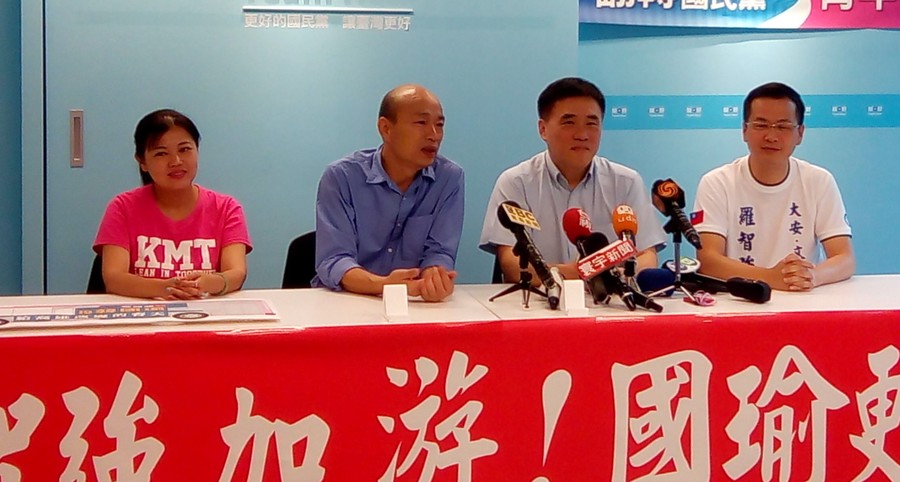 【台灣醒報記者陳睿仁台北報導】「我不會來台北當母雞,我只當『禿雞』!」國民黨高雄市長候選人韓國瑜1日偕同國民黨副主席郝龍斌、台北市議員候選人羅智強和游淑慧出席造勢記者會。韓國瑜感嘆兩大政黨選舉都往陰暗面走,呼籲候選人要多用陽光打選戰,「政治帶有三分幽默,就會從黑白變彩色。」