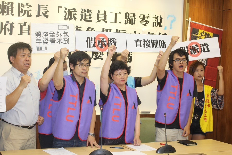 行政院日前宣布要在2年內將7000多名派遣員工歸零,雖然政府核心業務改為遴選辦法自僱,但非典型勞動人力,仍然用「勞務承攬」方式將業務外包給民間公司。台灣勞動產業工會1日召開記者會指出,除了派遣人員,公家機關還有許多非典型聘僱人員,且勞動條件、待遇比派遣員工還差,若政府只是讓派遣歸零,而不將承攬歸零,恐怕只是變相的派遣方式而已。