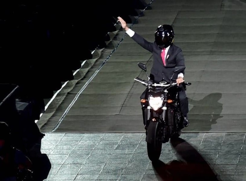 【台灣醒報記者陳睿仁綜合報導】印尼總統化身重機騎士!印尼總統佐科威18日騎重機登場亞運開幕典禮,酷炫的影片在網路上瞬間累積聲量,不少印尼網民都稱讚佐科威的開場表演。不過反對黨卻批評,佐科威只是想用噱頭打造個人形象,討好選民,人權人士也指責佐科威在印尼地震時拍影片,不過是浪費錢而已。