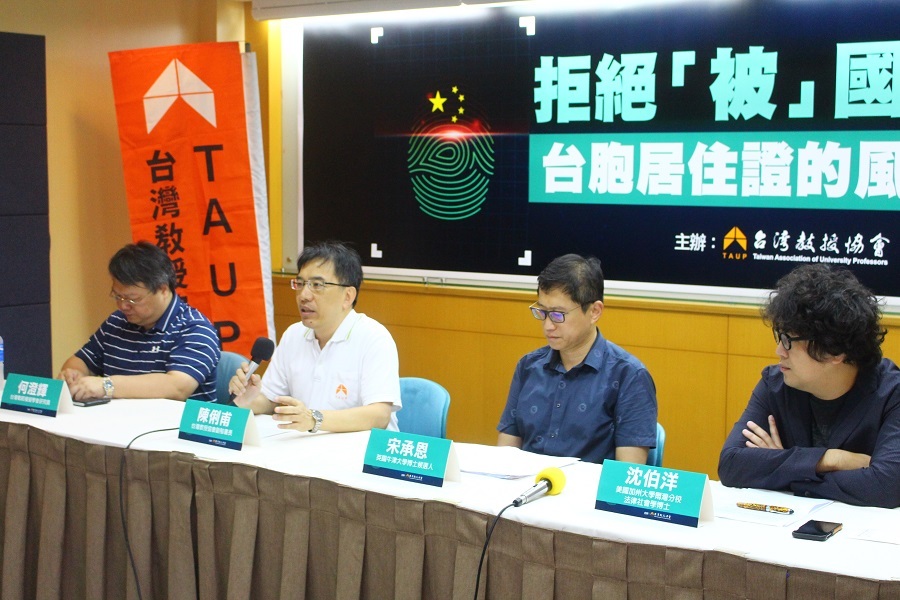 台灣教授協會30日召開記者會,英國牛津大學博士候選人宋承恩表示,很多國家都有居住證,但中國新推出的「港澳台居住證」與中國國民身份證一樣是18號的編碼,並享有與中國人一樣的待遇。這不但是侵犯台灣主權,將台灣的地位與香港和澳門劃上等號,更把台灣人當作是中國公民,是嚴重的侵權行為。