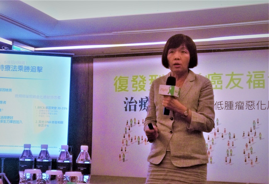 「台灣卵巢癌病人近 5 成發現時已晚期,且復發率高,容易產生抗藥性。」賴瓊慧指出,晚期卵巢癌經手術及化療後,超過8成案例發生復發及轉移,且復發間隔會縮短。此外,傳統抗癌武器有限,導致癌友5年存活率不到5成。幸好目前有最新的口服標靶藥物可供選擇,可以抑制DNA修復,對於含鉑化療敏感、前線化療有反應者,無須進行基因檢測,就能降低癌症復發機率。