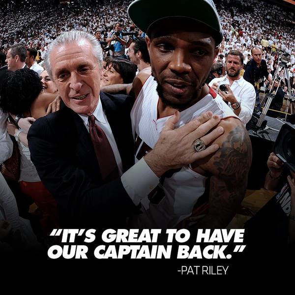 然而,萊里可能改打「老友牌」,根據《NBA官網》報導,熱火隊10日宣布與效力16年的硬漢隊長哈斯蘭完成續約,這名與韋德相處超過10年的禁區鐵漢於情感面也希望能回到邁阿密,甚至在邁阿密退役。在哈斯蘭確定續約後,韋德於推特上恭喜這名老隊長說,「哈斯蘭是我看過最無私的人。」
