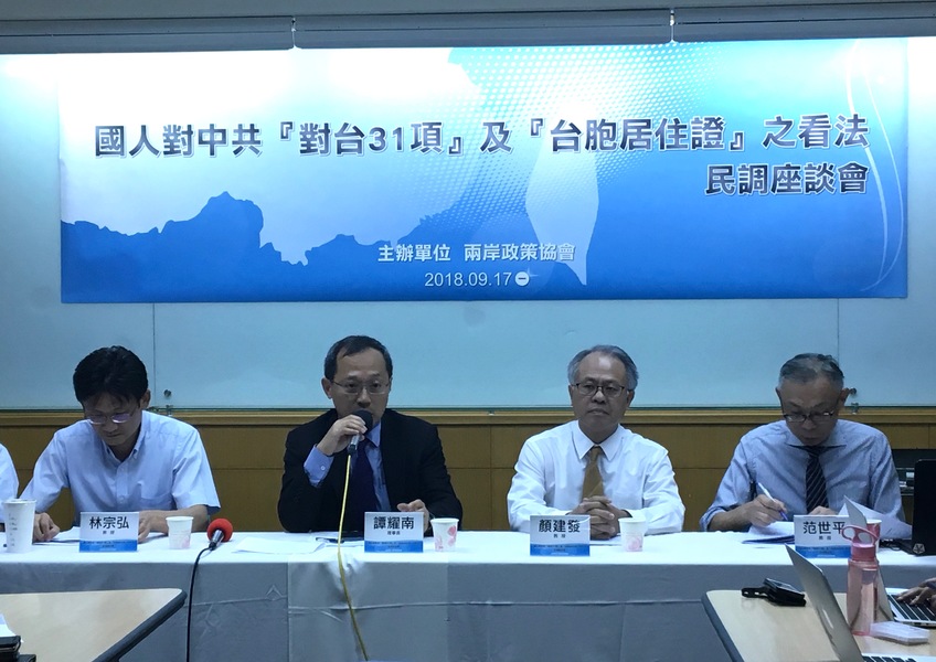 親綠的兩岸政策協會17日公布「國人對中共『對台31項』及『台胞居住證』之看法」民意調查結果,60.9%民眾表示知道從9月起可申領台胞居住證、59.6%民眾認為應該申報、58.4%認為應由政府管制;同時,近6成民眾認為,申領台胞居住證會有暴露隱私的風險。