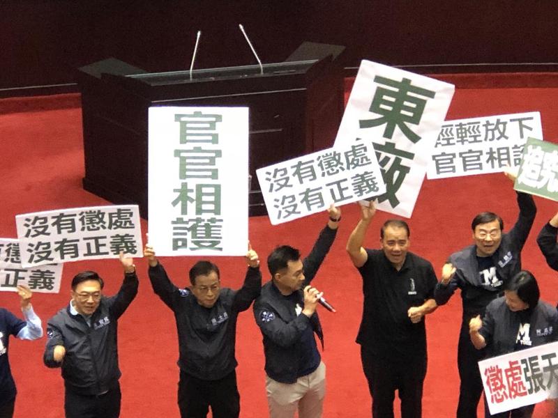 【台灣醒報記者劉東皋台北報導】「沒有懲處,沒有正義!」國民黨立法院黨團2日在行政院施政總報告前進行杯葛,要求行政院長賴清德就張天欽東廠事件先行道歉,並組成調閱小組進行真相的調查。經過黨團協商,賴清德報告時即先對張天欽事件引起社會紛擾向人民道歉,並同意成立專案小組調查真相。