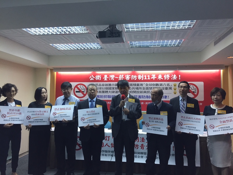 台灣已有11年未修菸害防制法,拒菸聯盟日前召開記者會表示,菸害防制是刻不容緩的議題。世界和平婦女會秘書長林淑慧指出,根據統計,1/2的吸菸者會死於菸害相關疾病。台灣癌症基金會副執行長蔡麗娟也提到,1/3的癌症問題與吸菸環境息息相關,如果菸害防治能夠落實,就能節省大量的醫療資源。
