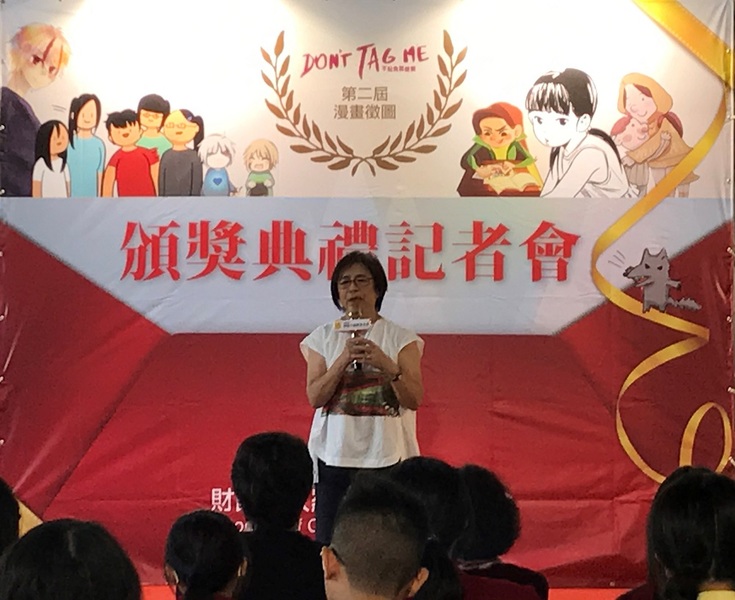 財團法人羅慧夫顱顏基金會14日於松山文創園區舉辦「第二屆Don't tag me微漫畫頒獎典禮」,今年從80件稿件中選出11件優秀作品。「Don't tag me」微漫畫比賽是以「拒絕標籤、尊重差異」為理念,基金會董事長翁芬華表示,唇顎裂患者雖然外表有些不同,但他們智力、笑容正常,跟一般人其實沒有不同,透過比賽希望社會能理解,不再有嘲笑。