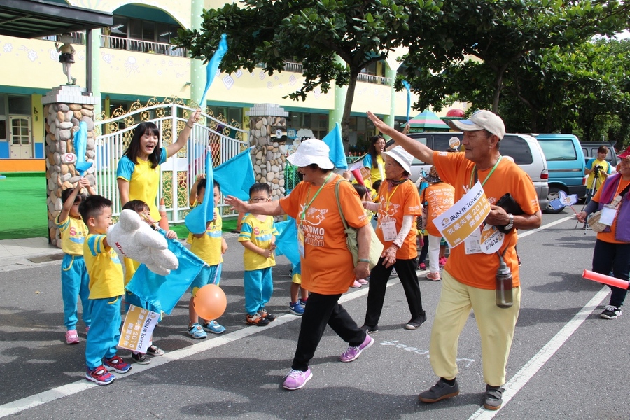 第一棒跑者胡阿嬤得知被選為首棒代表時,面露喜悅地說:「好啊!」回憶起國小時參加跑步比賽得第二名的往事,興奮洋溢在臉上久久不散。每一位參與的爺爺奶奶,有的結伴手牽手,有的在親友的注視關懷下一步一腳印,都說不辛苦,就像出遊一樣開心。