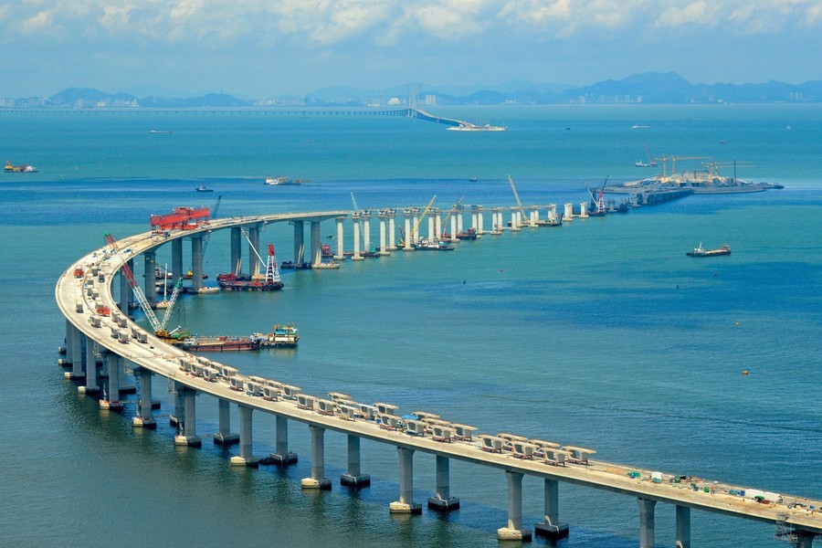 港珠澳大橋連接香港、珠海及澳門三地,採取「三地三檢」方式,關口由香港、珠海和澳門三地政府,各自負責設立和管理。「大橋」全長近50公里,並透過四座離岸人工島連接,為世界上最長的沉管隧道及世界跨海距離最長的橋隧組合公路。工程於2009年底開始施工,在超支及延誤等爭議下,最終歷時9年才正式落成,而光是港方,便為大橋工程投入近1200億港元公帑。