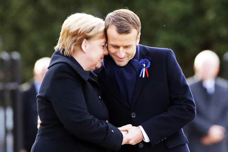 據《BBC》報導,為表現團結與對和平的肯定,法德兩國領導人馬克宏與梅克爾10日於法國貢比涅共同檢閱聯合軍隊後,再為一塊紀念一戰結束百年的新牌匾揭幕,兩人隨後參觀一戰停戰博物館,並登上一百年前協約國聯軍總司令、法國陸軍元帥福煦與德國代表簽署停戰協議的火車車廂複製品,在車廂內兩人翻閱紀念冊並簽名,象徵兩國友誼與對和平的堅固信念。