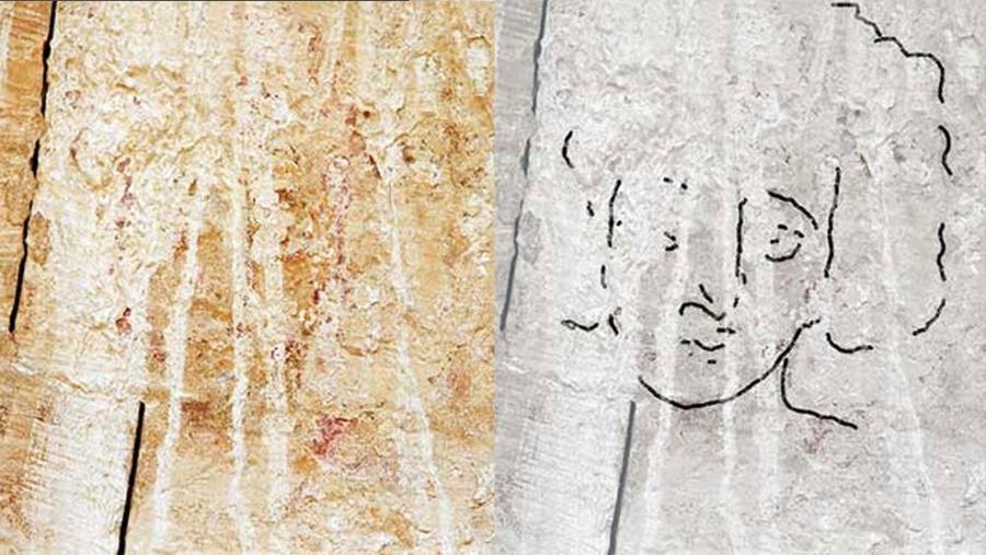 考古人員從出土的畫作,初步描繪出耶穌的臉部。(Photo by Dror Maayan)