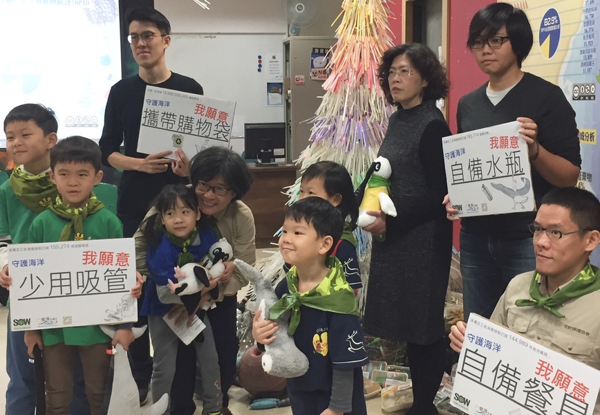 荒野保護協會今年用撿到的10,000多支海廢吸管,打造一棵海廢耶誕樹。荒野導護協會海洋守護專員胡介申打趣說,它應該叫做「噎」誕樹。他表示,在海廢吸管上常見三角形的動物咬痕,來自海龜,這個裝置藝術也凸顯了海洋垃圾與海中生物的互動,和可能造成的傷害。