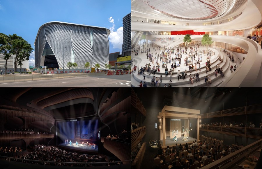 西九文化區戲曲中心別稱「西九東大門」,是香港西九文化區首座落成的項目。戲曲中心內最矚目的建築是其架空設計、離地30米的大劇院,可容納1073個座位,並可以阻隔鄰近高鐵和港鐵而造成的噪音問題,營造一個更適合戲曲表演的環境,同時亦象徵把中國戲曲提升至殿堂級地位的意義。