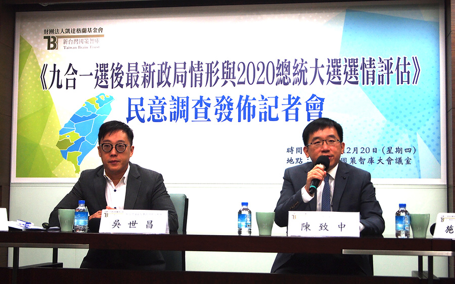 針對2020總統大選投票意向,民調顯示,若2020年上演「朱賴決」,新北市長朱立倫的支持度為43.8%,賴清德則為41.0%。吳世昌說,「這將是場五五波的對決,藍綠各自歸隊,中間選民的支持度也各佔一半。」但台北市長柯文哲是否參選,將為2020年總統大選帶來變數。民調顯示,只要柯P參選,無論是吳敦義或蔡英文都敵不過柯P,只有在朱立倫(或高雄準市長韓國瑜)、賴清德同時出戰的情況下,才能打成均勢。