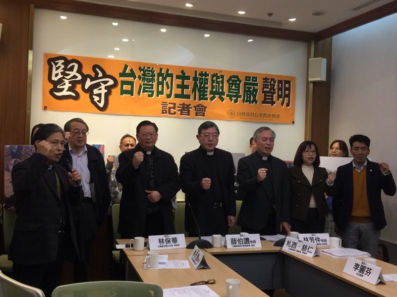【台灣醒報記者柯映青台北報導】拒絕一國兩制92共識,台灣基督教長老教會16日與天主教會、圖博藏族、維吾爾族代表共同召開記者會,以「堅守台灣主權與尊嚴」的宣言,公開反對習近平告台灣同胞書內容。長老教會總幹事林芳仲否定有92共識,「歷史文件在哪裡」?立委李麗芬則表示,中國正利用網路傳遞假訊息滲透台灣,台灣要嚴正抗議並拒絕接受中國。