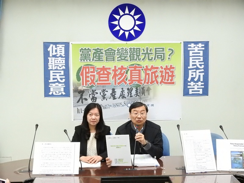 【台灣醒報記者柯映青台北報導】查黨產、真旅遊?去年8月行政院不當黨產處理委員會赴帛琉,考察國民黨產的中投公司轉投資的帛琉飯店,實際了解財務及經營現況。16日國民黨黨團拿出考察報告書,批評50頁全是帛琉飯店「旅遊政策白皮書」,黨產會是「假查核真旅遊」。黨產會則回應,2位同仁是應中投公司覆查要求,由中投安排行程、全程陪同,希望國民黨勿錯誤喧嚷。