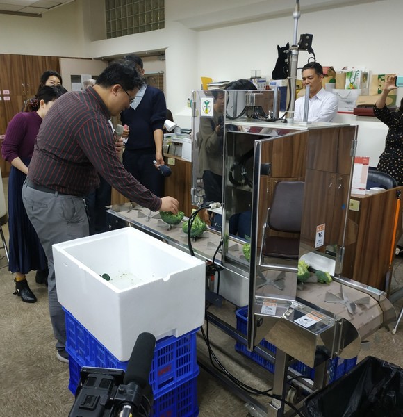 【台灣醒報記者張朝瑋台北報導】在轟隆隆的運作聲響中,只見農委會的研究員將一個個青花菜放到輸送帶上,下一秒就見機器已將整個青花菜切好,並把不用的菜心踢到一旁的桶子中,這是農委會台南區農業改良場推出的新型分切機,能在短時間內就將剛收割下來的青花菜處理好,目前已有12台在東、南部各加工廠,效益比外國的機器好。