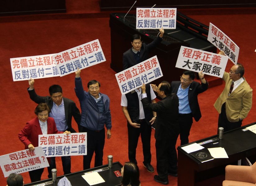 表決過程中,國民黨團偕同親民黨團要求將專法退回程序委員會審查,國民黨團發言人吳志揚認為,草案並未落實「程序正義」,應該對於立法程序充分討論後再逕付二讀,才能讓大家服氣。不過由於綠營佔有人數優勢,因此在「退回程序委員會」的表決中以23對66「挑戰失敗」。