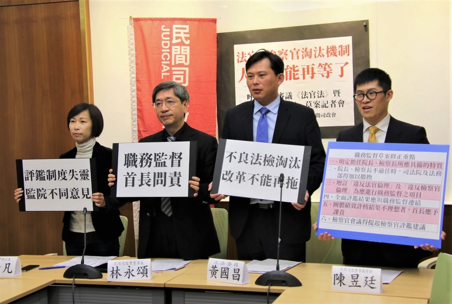 司改會專職律師陳昱廷則表示',法官評委會及檢察官評委會去年一整年只做成3項決議,行政效率持續探底,完全無法達成淘汰不適任法官及檢察官的監督功能。他也建議,過去評核委員都由司法院及法務部主掌,無疑是「自己人評自己人」。
