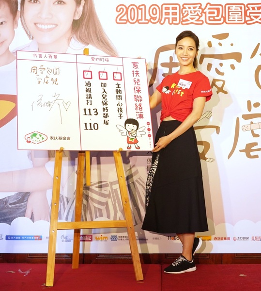 基金會邀請已為人母的侯佩岑擔任代言人,她在記者會中表示,看到這些兒虐案件的報導時,都感到憤怒與於心不忍,甚至會把電視關掉。但孩子總有一天會長大,該教的還是不能少,且未來也會面臨性教育等問題,除了學校教導外,她認為父母也要抱持開放的心態,多學習如何教育孩子。