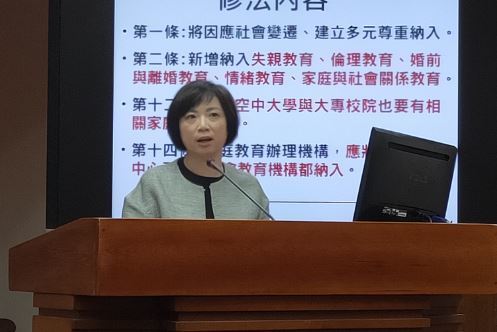 他也提到,增設相關輔導人員相關問題,由於還是有成本的考量,目前地方與中央都還沒有相關經費因應,因此他希望,可以在家庭教育法鎖定的服務範圍與方式進行更多討論,並積極會同跨部會共同努力,落實提供民眾所需家庭教育的服務。