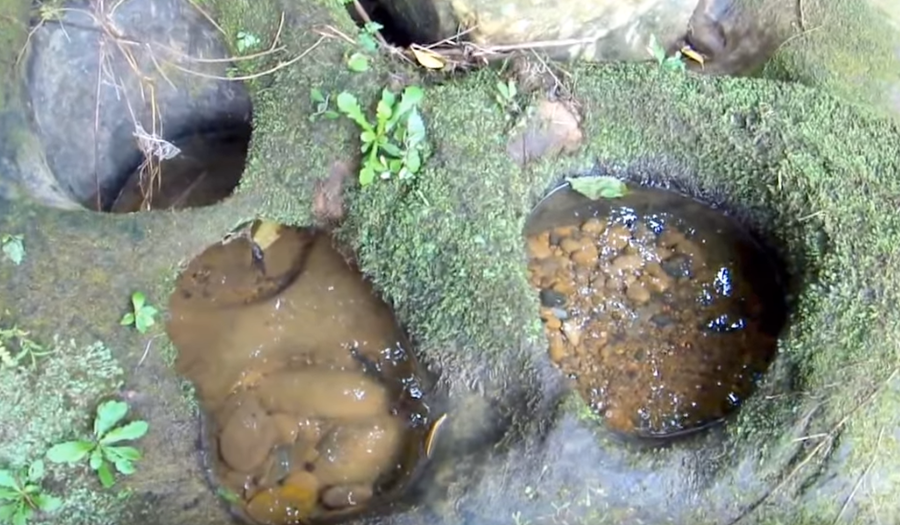 原來,壺穴的生成並不簡單,當上游的石塊被沖往下游時,遭到岩石阻擋了去路,石塊卻未放棄努力,隨著水流的漩渦,不停打轉,終於在岩石上轉出了圓形孔洞。