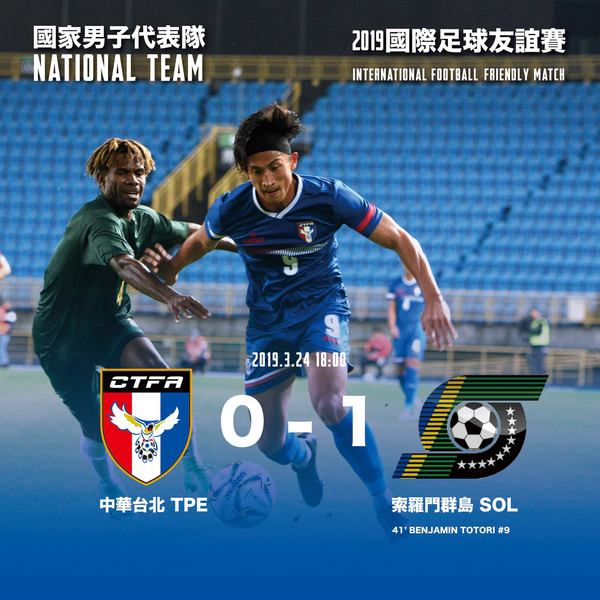 上半場終了前,久攻不下的男足遭到索國快速反擊,運氣不佳地賠上12碼,客隊靠著老隊長托托里沈穩操刀,打進全場唯一一球,最終便以1:0擊敗控球權、氣勢都略勝一籌的中華隊。