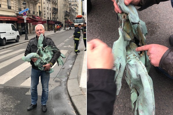 回到當下,因著這次火災,塔頂的公雞隨著坍塌的尖塔墜入灰燼,全身沾滿了煙渣像是沾了麵包粉的下鍋雞,發現的人說,公雞被發現掉在火燒不到的好地方(fallen on the good side…away from the seat of the fire),交付相關單位等待修復。
