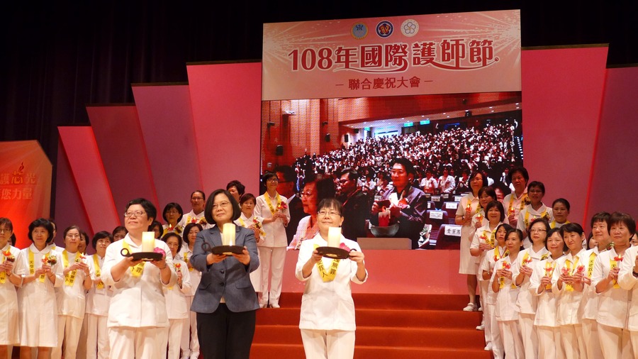 【台灣醒報記者張朝瑋台北報導】全場護理人員都繫上黃絲帶,聲援在護理之家大火案中遭起訴的同仁!護理公會全聯會8日舉辦國際護師節慶祝大會,全聯會理事長高靖秋表示,從護理人員因大火案遭起訴一事,顯示台灣在保障護理人員權益上還有進步空間。總統蔡英文表示,已要求消防單位研擬修法,讓護理人員日後能免於類似案件。