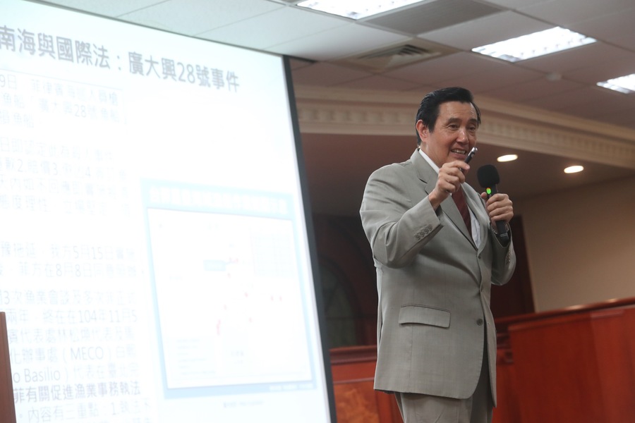 馬前總統在開場時以知名的漁業糾紛案件「廣大興28號事件」為例,指出這是他任內首次碰上的遠洋漁業糾紛,台灣漁民在雙方重疊的經濟海域捕魚時遭受菲律賓海巡署的攻擊,船隻多處受損,漁民也傷亡慘重。雖然他嚴重警告菲國政府道歉,但對方始終不為所動。最後在施加停止經貿往來後,菲國主動派遣特使致歉賠償,才化解這次漁業外交事件。