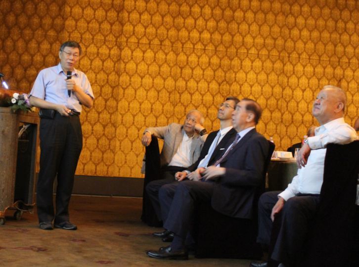 談起每天7點準時坐鎮在市府會議室,柯文哲說,公務員這麼早上班,下班後就沒力氣去應酬了,引來現場企業界人士的一片笑聲。不過有企業人士問到,為何如此注重效率的柯市府團隊,卻搞不定一顆大巨蛋?柯文哲嚴肅的說,大巨蛋是典型的歷史共業,目前面臨到的問題是建築限高。
