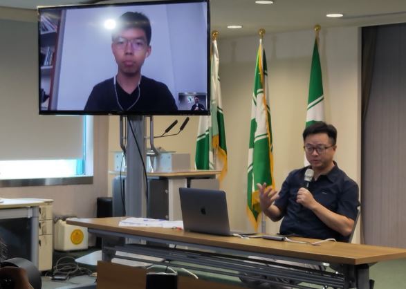 【台灣醒報記者呂翔禾台北報導】「一國兩制在香港徹底失敗!」香港眾志秘書長黃之鋒1日於香港立法會跨洋與民進黨秘書長羅文嘉連線對話,雖然因現場抗爭活動緣故,訊號不佳。但黃之鋒仍呼籲台灣民眾,絕對不能接受北京的「一國兩制、台灣方案」,他也感謝台灣能對香港「反送中」活動表達支持。