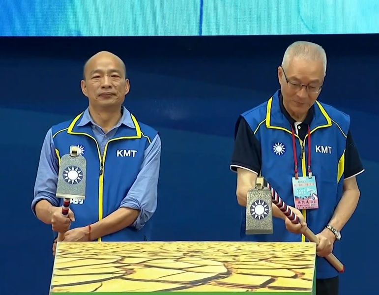 【台灣醒報記者吳婉瑜綜合報導】以鋤頭除草、保齡球、紙飛機等寓意,國民黨全代會28日宣示打倒民進黨,韓國瑜致詞結尾時帶領全場高喊:「天佑中華民國、天佑台灣人民!」全場一同揮動國旗,會場氣氛達到最高潮。不過王金平雖出席,卻在韓國瑜致詞完後隨即離去,另外,國民黨也為缺席的郭台銘預留座位,韓國瑜則是被歷任黨主席包圍,坐在正中央,與郭形成對比。