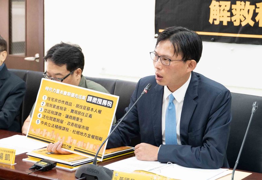黃國昌說明國會新會期修法重點:「持有1戶的自住房屋者」,稅率從1.2%調降至1%,第2戶、第3戶的房屋稅率維持1.2%,針對「持有4戶以上的囤房大戶」,分階段累進。另外,時力還提出,應對未出租使用的非住用宅課徵5%至8%的「空店稅」,讓商圈重生。