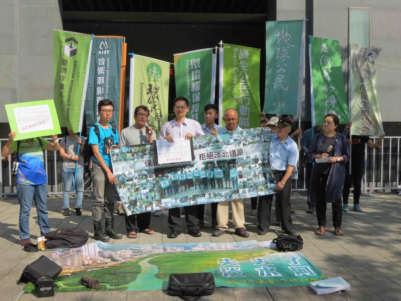 【台灣醒報記者張元融台北報導】「勿通過無法改善交通問題、又破壞生態的淡北道路!」爭議不休的淡北道路在5月環評會決議退回專案小組後,25日由新一屆環評委員進行第4次專案小組審查會議。環境法律人協會等民團於會議開始前,在環保署大門口反對「無用淡北道路」,呼籲新任環評委員審慎審查。