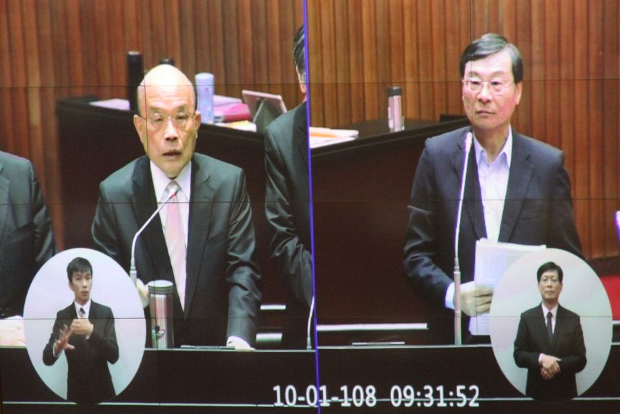曾銘宗另質疑,為何今年多起颱風,卻不見蔡英文總統前往中央災害應變中心視察?蘇貞昌回應,他才是最高行政機關首長,而總統是負責領導國家,上次颱風來襲時,他就直接在應變中心與總統通話,昨天也是直接到總統官邸報告防災情形,總統絕對沒有不關心,或是去跑選舉行程。