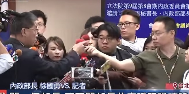 徐國勇面對媒體追問「是否贊同一中框架?」、「所以是在睜眼說瞎話嗎?」,忍不住動怒並手指著記者回嗆「你講話客氣點!」對於身為中國政委的牧師管浩鳴說,陳嫌不能成為政治籌碼,陳明通說,「我勸管牧師,如果有心要幫這個女的伸張正義,有心要讓陳同佳到台灣受審,就少說兩句話。」